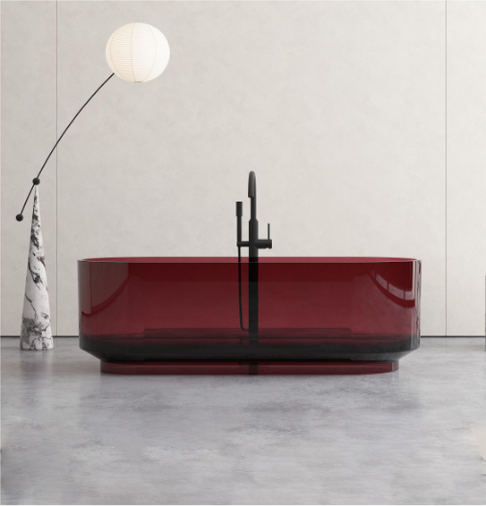 _Chất liệu Crystal: Đây là một vật liệu tương đối mới, được kết hợp giữa nhựa Acrylic và tinh thể khoáng chất tự nhiên. Chất liệu Crystal nổi bật với tính thẩm mỹ cao, độ bền tốt, khả năng chịu nước và giữ nhiệt ấn tượng. Nhờ thành phần khoáng chất, Crystal có thể có khả năng giữ nhiệt tốt hơn so với Acrylic thông thường, mang lại trải nghiệm ấm áp và thư giãn lâu dài.
