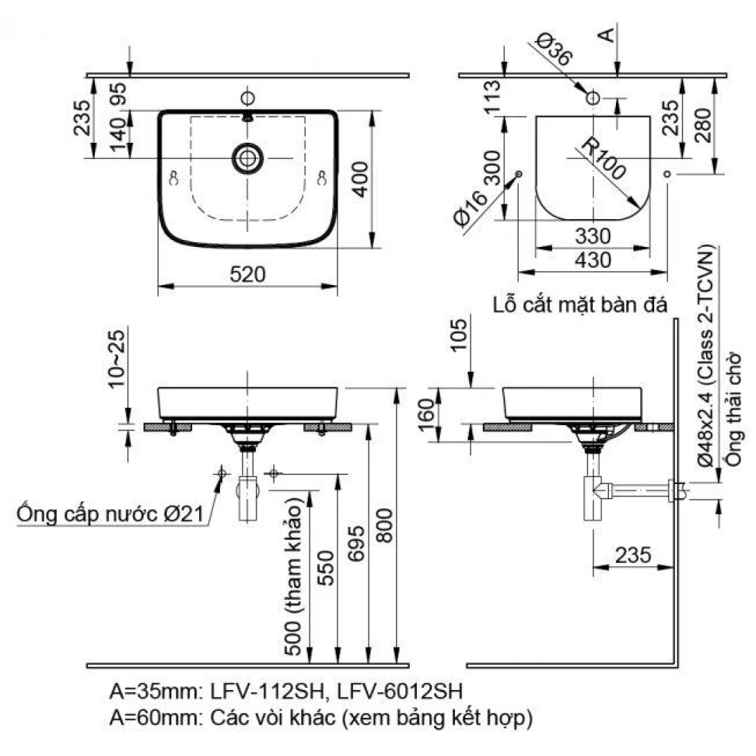 Thông số kỹ thuật chậu rửa mặt INAX AL-638V