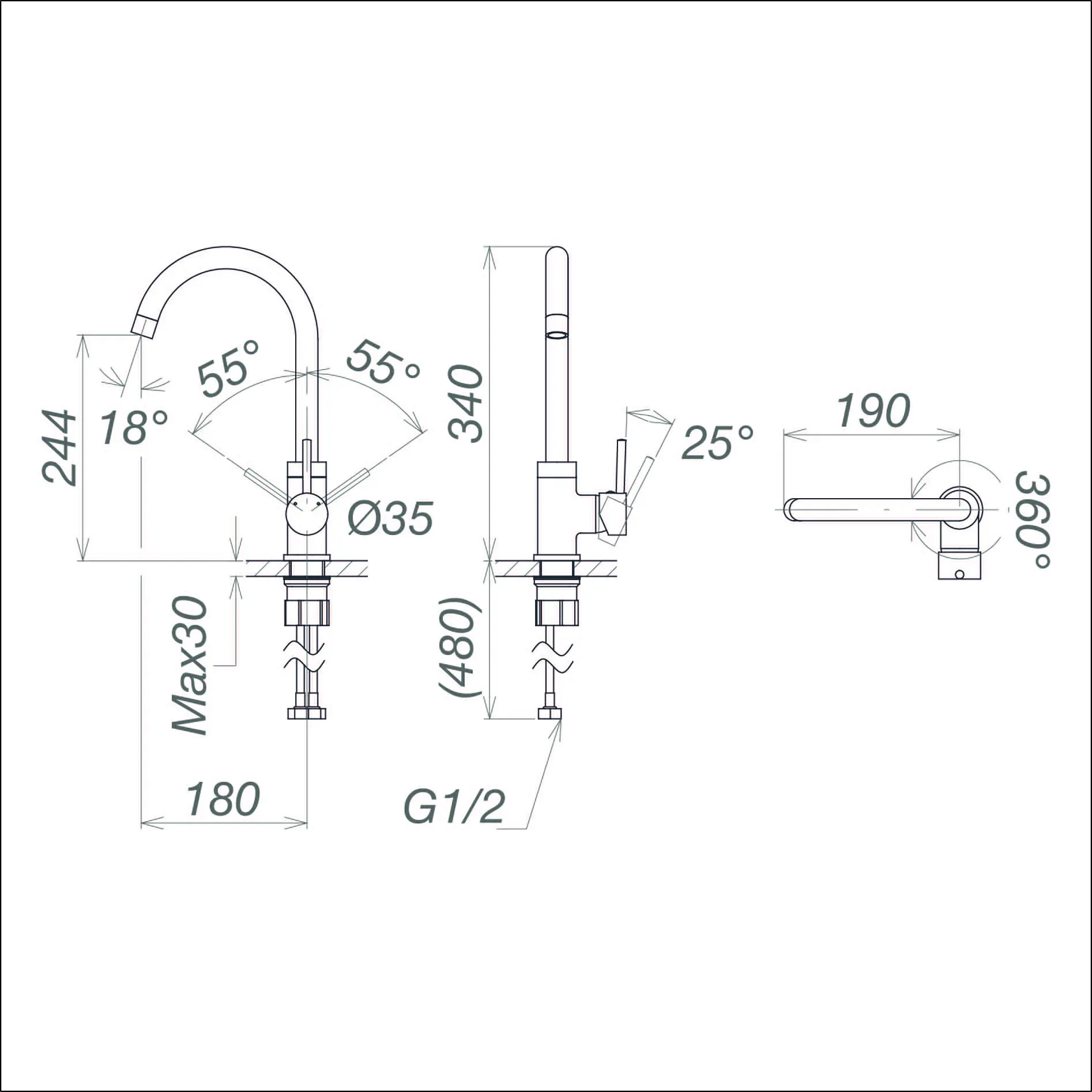 Bản vẽ kỹ thuật vòi rửa chén Viglacera VG 731