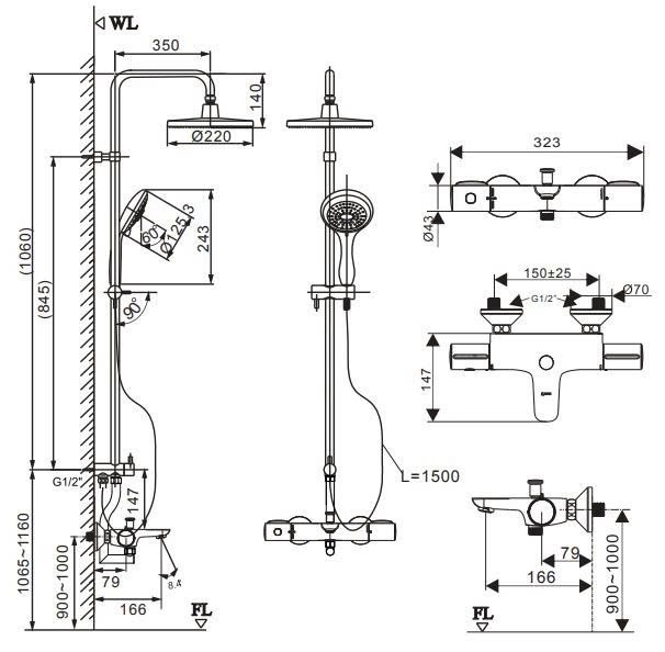 Bản vẽ kỹ thuật sen tắm nhiệt độ: